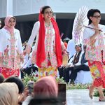 “Sebelum acara dimulai, izin Pak Jokowi saya mau berpantun. Bunga menur bunga raflesia, mekar sekuntum merah merona. Citra luhur wanita Indonesia, pribadi anggun dengan kebaya,” ujar Ibu Iriana yang tampil mengenakan kebaya encim khas Betawi berwarna merah.