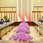 Presiden Jokowi didampingi delegasi Indonesia lainnya kemudian berjalan hingga lokasi yang telah ditentukan. Delegasi yang turut serta yaitu Menteri Luar Negeri Retno Marsudi, Menteri Perdagangan Zulkifli Hasan, Menteri Badan Usaha Milik Negara selaku Ad Interim Menteri Koordinator Bidang Kemaritiman dan Investasi Erick Thohir, Sekretaris Kabinet Pramono Anung, Duta Besar RI untuk RRT Djauhari Oratmangun, dan Atase Pertahanan RI di Beijing Brigjen Mar. Benny P. Nadeak